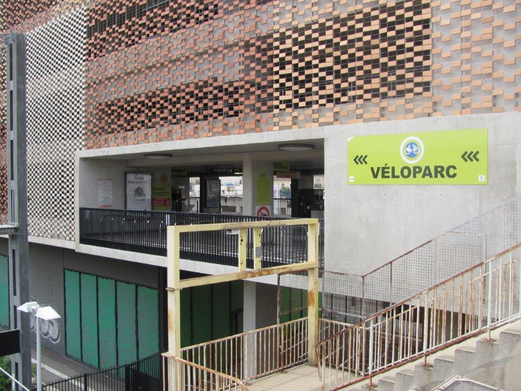 Aperçu d’une partie du véloparc situé à l’entrée du niveau P2 du parking Saint-Roch depuis le Pont-de-Sète à Montpellier, le jeudi 14 mai 2020. Copyright : Edouard Paris