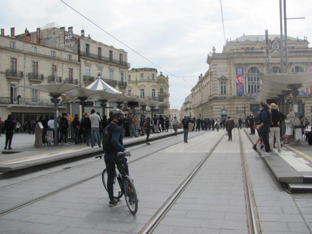 Photographie de la station « Comédie » communes aux lignes 1 et 2 où un face à face entre les gilets jaunes et les forces de l’ordre a eu lieu l’après-midi du samedi 16 mai 2020, 6e jour de déconfinement progressif en lien avec le coronavirus Covid-19. Copyright : Edouard Paris