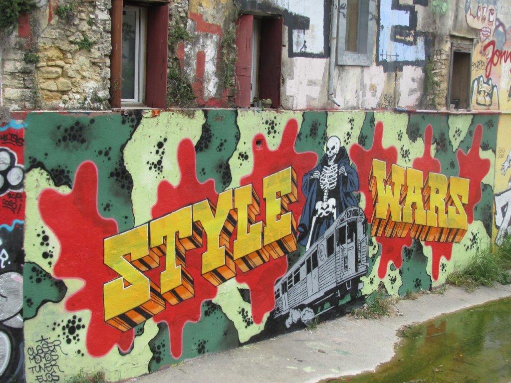 Art de la rue sur une paroi en béton du lit canalisé du Verdanson, avenue Saint-Charles à Montpellier, en contrebas des voies de la ligne 1 de tramway. Photo prise le samedi 23 mai 2020, 13e jour de déconfinement progressif en lien avec la pandémie de coronavirus Covid-19. Copyright : Edouard Paris
