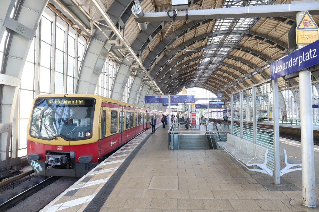 Une unité multiple de rames S-Bahn, opérant sur la ligne S7 en direction de Potsdam Hbf, est photographiée en gare de Berlin Alexanderplatz, le dimanche 12 avril 2020, un jour de mesures restrictives pour cause de pandémie de coronavirus Covid-19. Copyright : Urban Transport Magazine