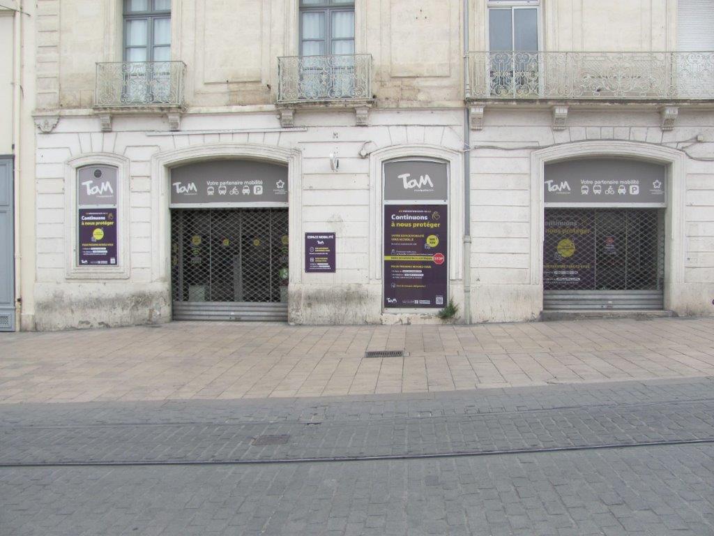 Tout comme les deux autres Espaces Mobilité TaM, celui de la rue Jules-Ferry à Montpellier sera à nouveau accessible à tout un chacun sans rendez-vous à compter du mardi 2 juin 2020, début de la phase 2 de déconfinement progressif en lien avec la pandémie de coronavirus Covid-19. Photo prise le dimanche 31 mai 2020. Copyright : Edouard Paris