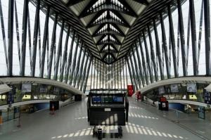 Le jeudi 11 juin 2020, dixième jour de la phase 2 de déconfinement progressif en lien avec la pandémie de coronavirus Covid-19, un immense sentiment de solitude a envahi l’auteur des photos qui illustrent la présente info, tant à l’extérieur que du côté du hall du terminal 2 de l’aéroport et de celui de l’immense gare à l’architecture signée par l’Espagnol Santiago Calatrava Valls. Dans cet environnement quasi désert, on se serait encore cru en période de confinement.