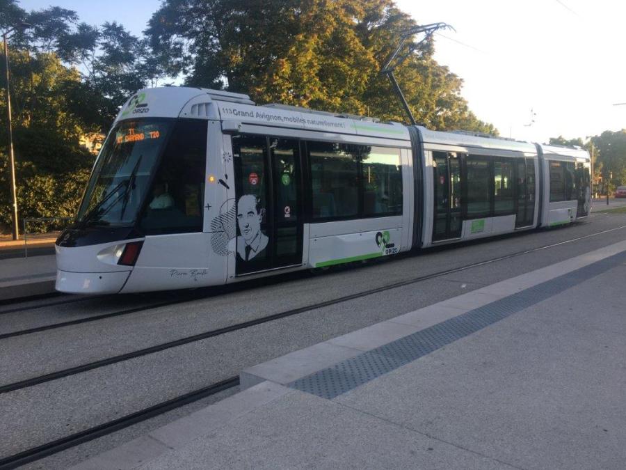 A Avignon, la rame 113 Citadis 205 Alstom baptisée Pierre Boulle, circulant en direction du terminus « St Chamand », est photographiée à la station « Gare Centre République » de la ligne T1, le vendredi 19 juin 2020. Copyright : En passant par là