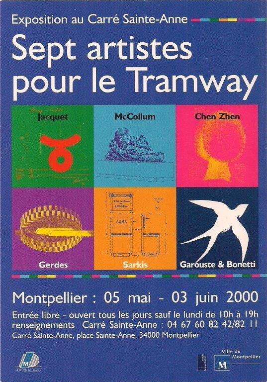 Carte postale éditée dans le cadre d’une exposition organisée au Carré Sainte-Anne à Montpellier, du vendredi 5 mai au samedi 5 juin 2000, intitulée « Sept artistes pour le Tramway ». Collection Michel Bozzola