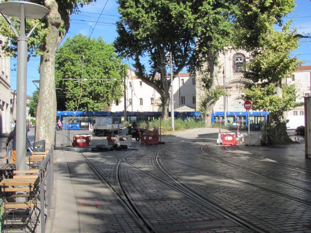 Les travaux consistent au renouvellement des rails et du revêtement de la plateforme entre la station « Corum » et le carrefour précédant le boulevard Louis-Blanc, dans la courbe en pente qui longe la rue du Faubourg-de-Nîmes, et au remplacement du revêtement de la plateforme du tramway constitué de dalles de pierre par du béton désactivé, boulevards Louis-Blanc et Pasteur. Des bordures devant limiter les incursions des automobiles sur la plateforme du tramway sont et seront posées de part-et-d’autre de cette dernière.