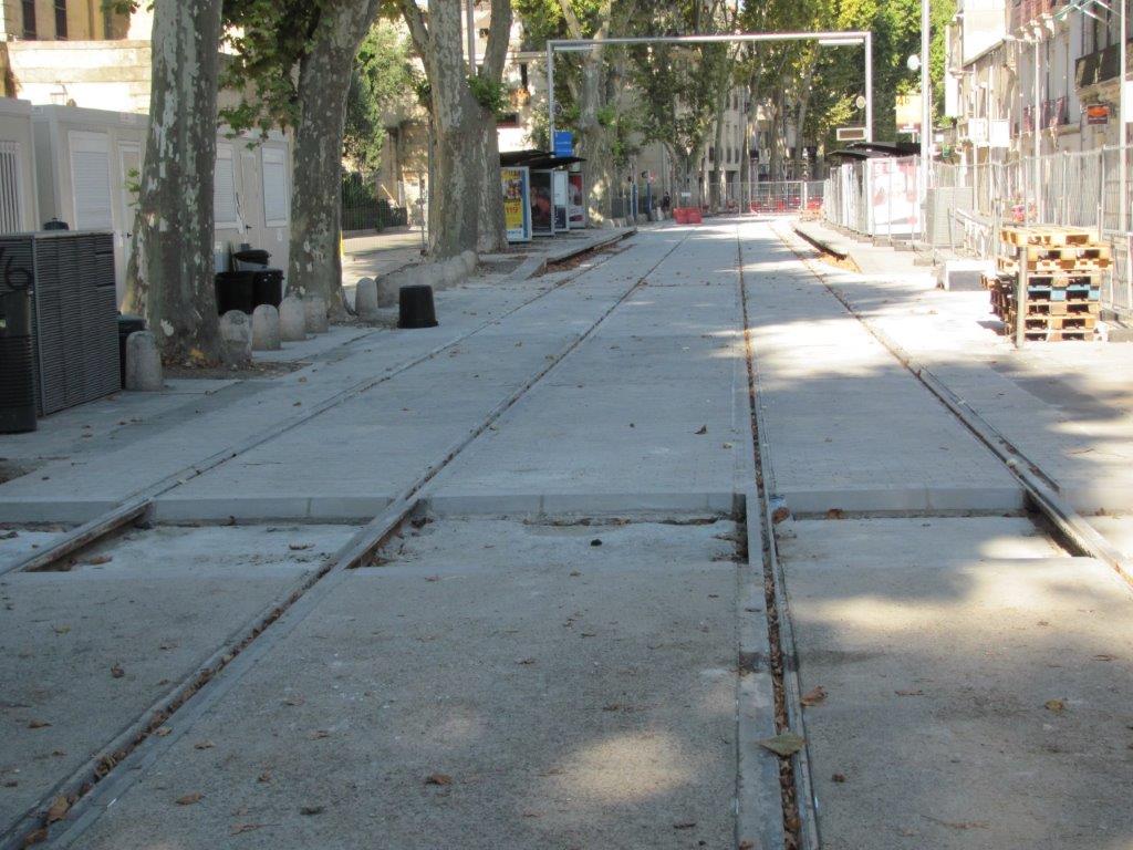 Au vu de ce qu’ils ont pu constater à l’issue de la sixième semaine du chantier des travaux d’été effectués sur le tronc commun des lignes 1 et 4 de tramway entre la station « Corum » et la place Albert-1er, les auteurs de la présentes info et des photos qui l’accompagnent considèrent que la septième semaine devrait être consacrée aux finitions et que les essais de circulation par des rames de tramway pourront être menés à bien d’ici au lundi 31 août 2020, date fixée pour la reprise des itinéraires habituels des lignes 1 et 4 et l’entrée en vigueur des horaires de l’hiver 2020/2021.