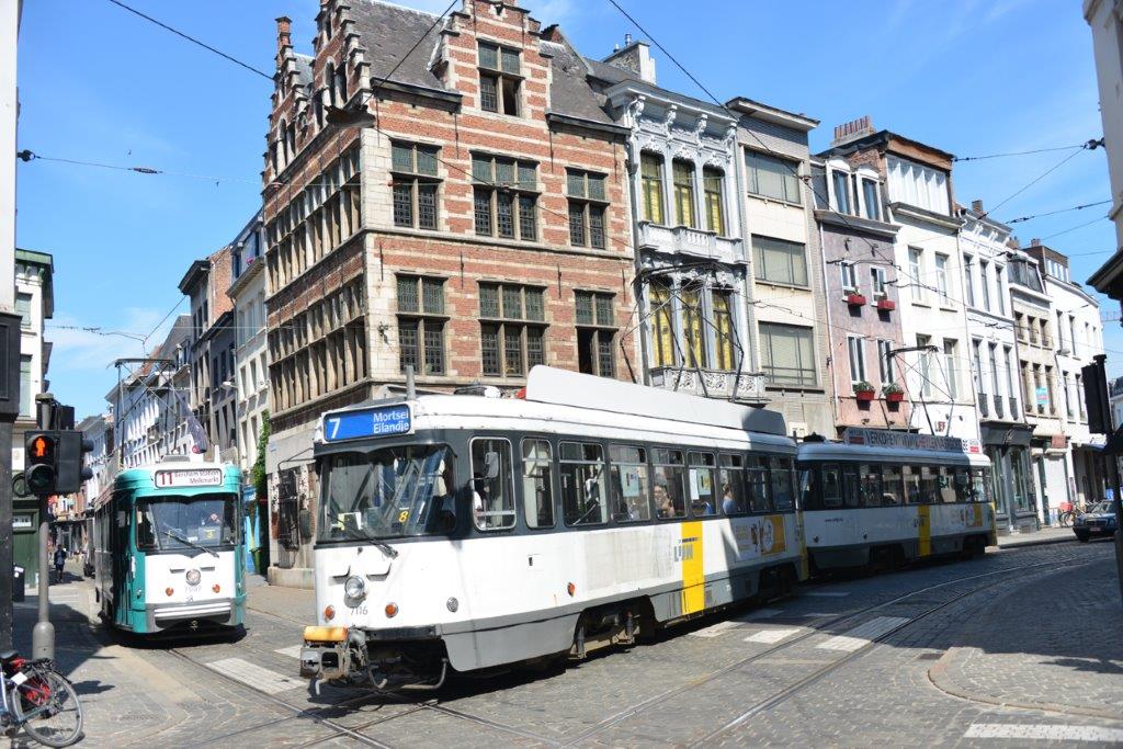Côté parc roulant, de 1960 à 1975 le constructeur belge La Brugeoise et Nivelles (BN) a livré 166 motrices de type PCC numérotées 2000 à 2165 puis 7000 à 7165 après modernisation. A ce jour, il en reste plus d’une centaine en service sur les lignes 2, 4, 7, 11, 12 et 24. Sur les lignes 7, 11 et 12, le service est exclusivement assuré par ces motrices PCC. Entre 1999 et 2012, l’exploitant De Lijn, qui est également en charge du réseau de Gand et de la ligne de tramway de la côte belge, a réceptionné 84 rames articulées à plancher bas unidirectionnelles NGT6 Hermetlijn séries 1 (numéros 7201 à 7231), 2A (numéros 7232 à 7261) et 2B (numéros 7272 à 7284) construites conjointement par Bombardier et Siemens. A partir de 2014, De Lijn a commencé à prendre livraison de 62 rames articulées à plancher bas unidirectionnelles Flexity 2 Albatros Bombardier numérotées 7301 à 7310 en version longue (7 caisses), 7311 à 7348 en version courte (5 caisses) et 7349 à 7362 en version longue. En 2017, De Lijn a passé commande de 146 rames Urbos 100 articulées à plancher bas intégral au constructeur espagnol CAF, dont 66 unidirectionnelles destinées au réseau de tramways d’Anvers.