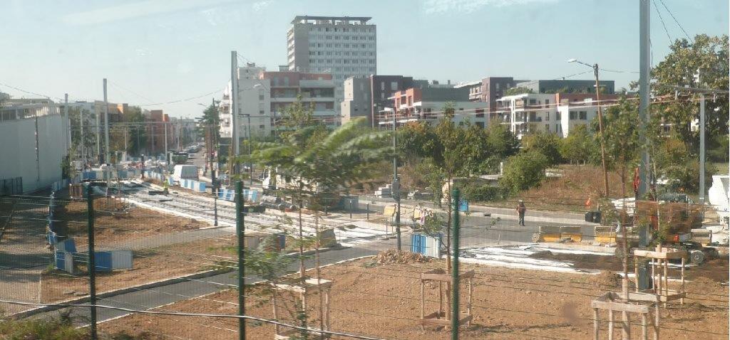 Ce mardi 22 septembre 2020, voie des Saules à Orly, entre la future station « Les Saules » et le terminus « Orly – Gaston Viens », un engin s’affairait à étaler de la terre végétale sur la plateforme du tramway déjà équipée de ses rails et de la ligne aérienne de contact déroulée au-dessus de chaque voie.