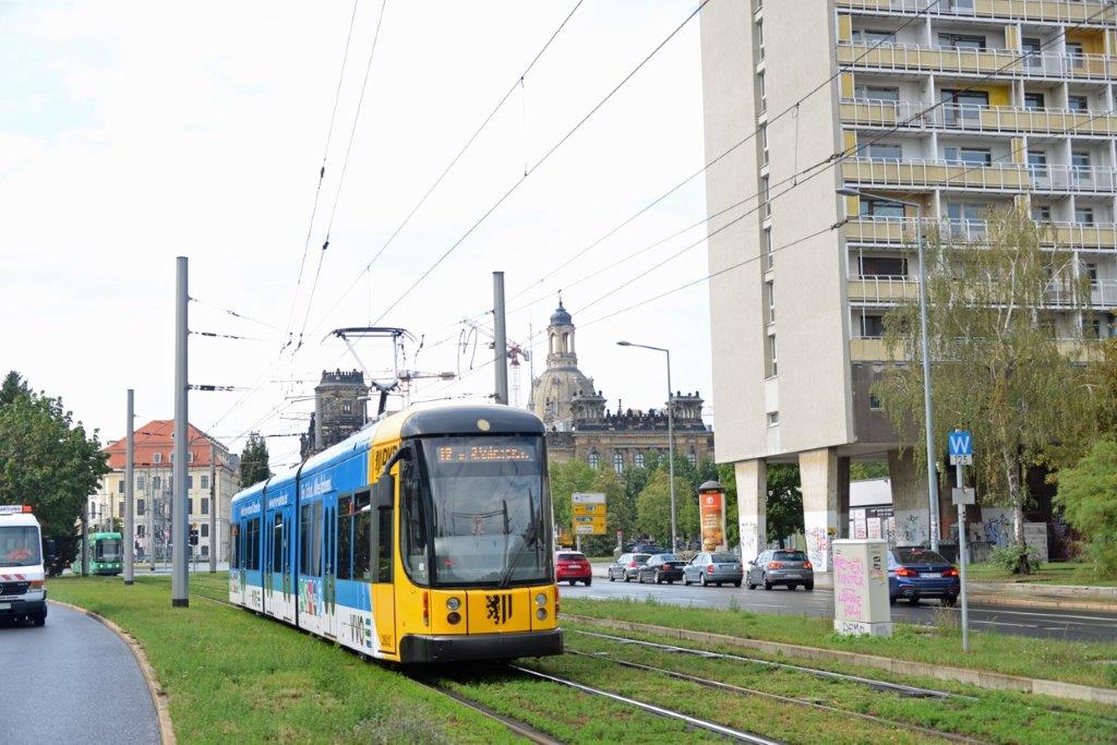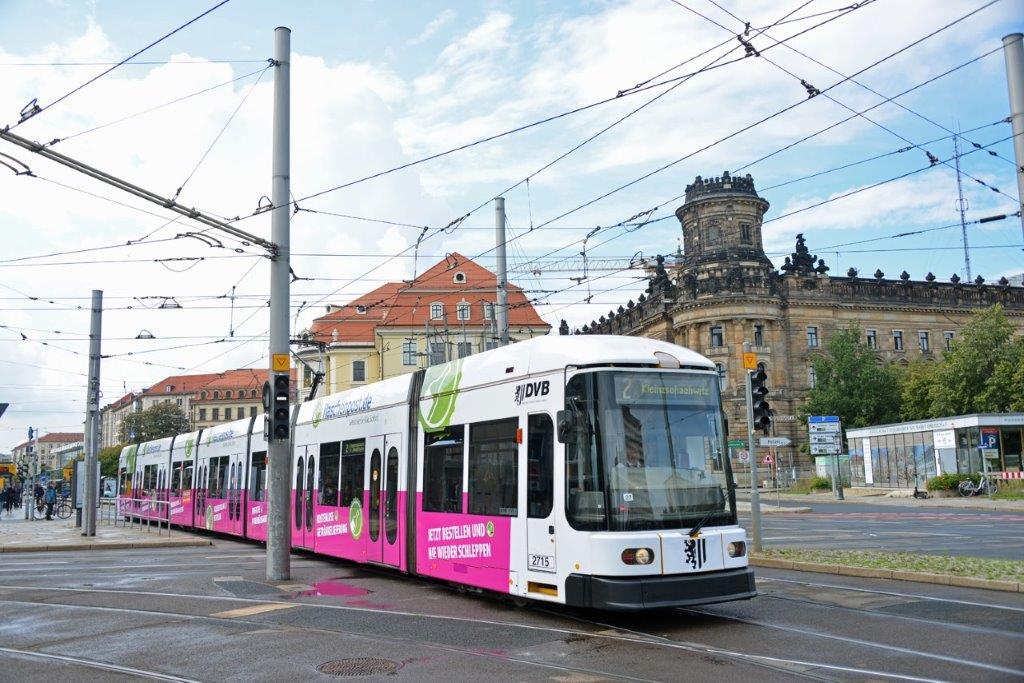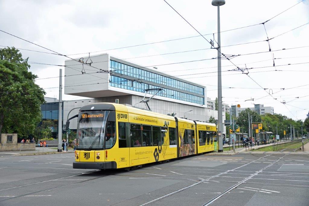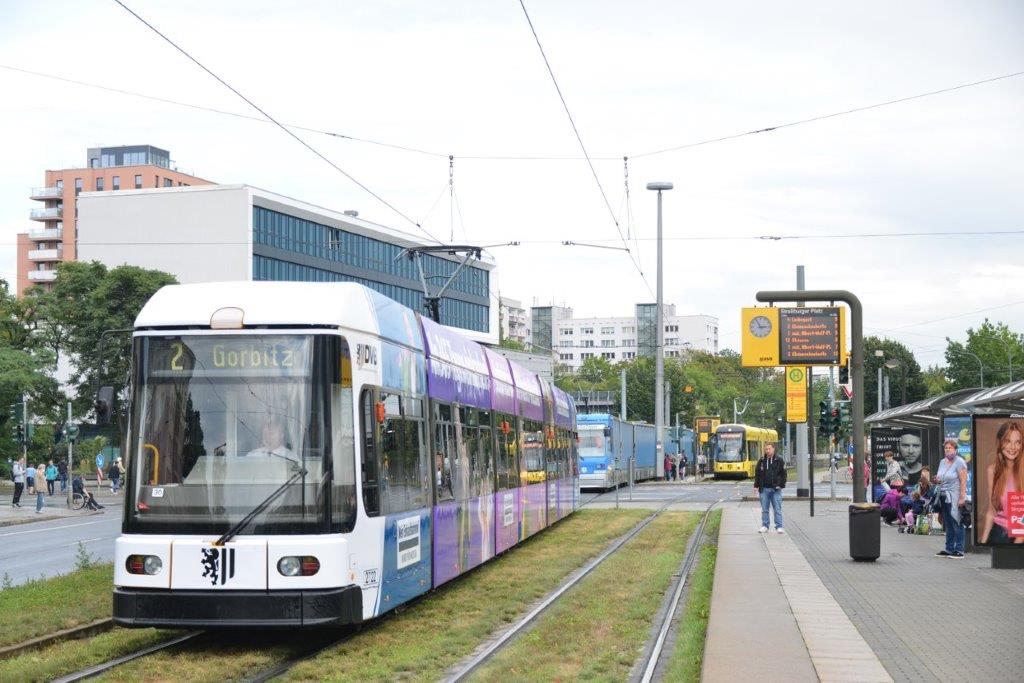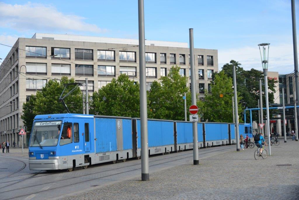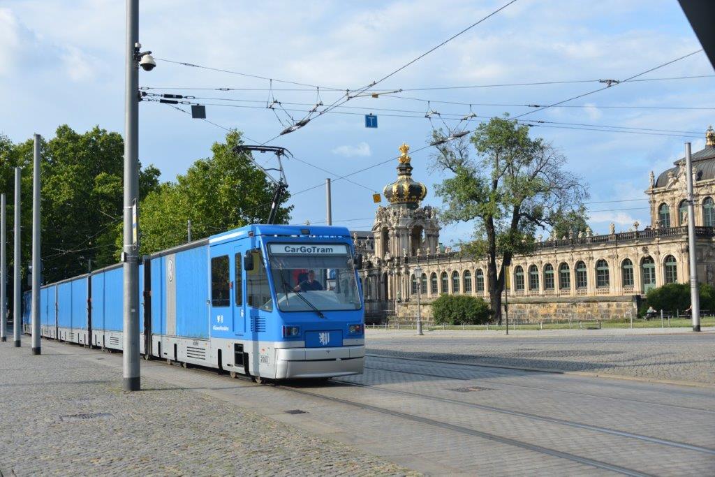 Une des particularités du réseau de tramways de Dresde réside dans le fait que ses voies sont également utilisées par des CarGoTrams. En 1997, le constructeur automobile allemand Volkswagen décide d’implanter une usine à Dresde pour y assembler ses modèles haut de gamme Volkswagen Phaeton et Bentley Continental Flying Spur. En mars 2000, la Dresdener Verkehrsbetrieb AG (DVB), la société qui exploite le réseau des transports publics de Dresde, et Volkswagen signent un contrat d’acheminement de composants des voitures entre l’unité logistique jouxtant la gare de Dresde Friedrichstadt et l’usine faisant angle et retour avec la Lennéstraße, la Straßburger Platz et la Stübelallee par le biais d’un tramway fret dont le parc roulant comprend 5 voitures-pilotes et sept wagons construits par l’Allemand Schalker Eisenhütte Maschinenfabrik GmbH en 2000 et 2001. Dans les faits, une voiture-pilote et un wagon demeurent en réserve. Chacun des deux convois est constitué de deux voitures-pilotes, une à chaque extrémité, qui encadrent trois wagons. Chaque voiture-pilote peut transporter 7,5 t de charge utile et chaque wagon 15 t, soit un total de 60 t de charge utile par convoi. Chaque voiture-pilote et chaque wagon sont équipés de deux bogies moteurs. C’est la société DVB qui fournit les conducteurs, assure l’entretien des véhicules et la sécurité des circulations En 2020, la célèbre usine de verre produit des e-Golf 100 % électriques depuis 2017.