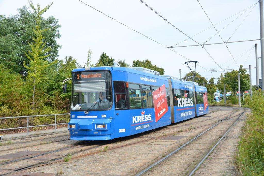 La ligne 4, d’une longueur de 8,2 km, relie dans les deux sens le terminus « Pölbitz » au nord au terminus « Städtisches Klinikum » à l’ouest, via les stations « Neumarkt » (Bosestraße), « Georgenplatz » et « Marienthal/Paulusstraße » notamment.