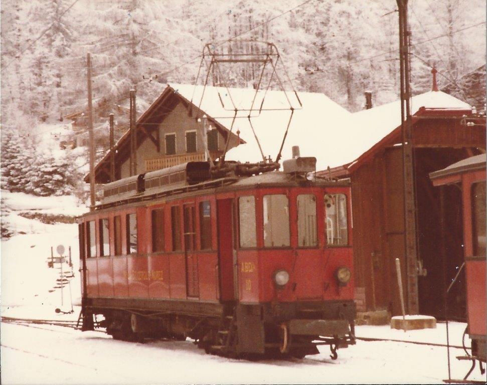 De 1916 à 1985, les trains ont été assurés par 5 automotrices de type ABDe 4/4 de conception suisse produites par Schlieren et Brown-Boveri, numérotées 1, 5, 6, 10 et 11, rejointes entre les deux guerres par 2 unités de même type produites en France, l’une par Dyle & Bacalan en 1924 numérotée 3 et l’autre par CGCEM en 1936 numérotée 2. Ces automotrices étaient aptes à prendre en remorque aussi bien des voitures voyageurs que des wagons marchandises.