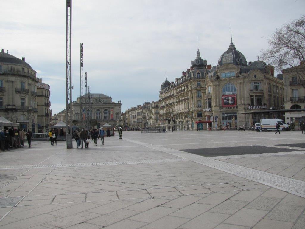 Ce samedi 13 février 2021 en début d’après-midi, la dalle du Triangle en plein chantier de rénovation, située entre la place de la Comédie et l’entrée nord du centre commercial Polygone, n’était pas très animée, d’autant plus que la place emblématique du centre-ville de Montpellier a dû être évacuée durant plus d’une heure en raison du signalement d’un bagage abandonné à proximité du cinéma Gaumont.