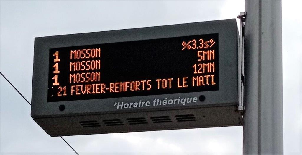 Samedi matin, 20 février 2021, à la station « Château d’Ô » de la ligne 1, quai direction « Mosson », le tableau électronique d’information affichait, à l’approche de la première rame attendue, %3.3s% à la place de la mention Proche qui alterne normalement avec la mention 1mn. L’affichage est redevenu normal après le départ du tram, mais le même phénomène se produisait également sur le tableau électronique d’information du quai direction « Odysseum » moins de 2 minutes avant l’arrivée de la première rame annoncée.