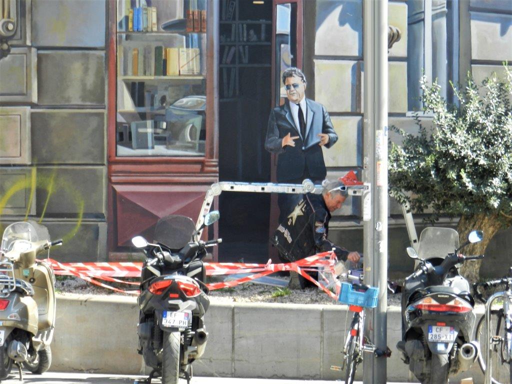 Après avoir fait une apparition éphémère au mois de novembre 2017, un portrait plus jeune et moins bedonnant de Georges Frêche, dessiné par le peintre muraliste Olivier Costa, orne la fresque murale trompe-l’œil de la place Edouard-Adam à Montpellier dont l’artiste est un des deux auteurs.