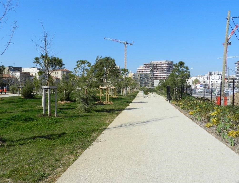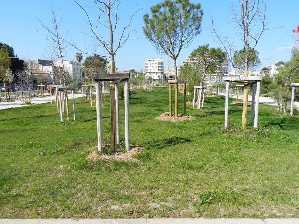C’est sans aucun doute en raison des multiples chantiers de construction en cours dans la ZAC Nouveau Saint-Roch, dont le périmètre est compris entre la gare de Montpellier Saint-Roch et le boulevard Vieussens, que l’îlot de verdure de 1,3 ha baptisé parc René-Dumont, aménagé dans la partie ouest de cette ZAC, en bordure du tronc commun des lignes 2 et 4 de tramway longeant l’avenue de Maurin, est toujours interdit d’accès au public bien qu’au mois de mars 2019 la plupart des médias locaux annonçaient son ouverture pour l’été 2019.