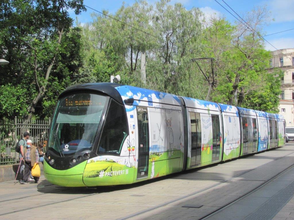 A Montpellier, c’est la rame 2099 Citadis 402 Alstom multiligne qui a revêtu la livrée intégrale « Pacte Vert pour l’Europe » depuis le mardi 4 mai 2021. Cette rame, qui est apte à opérer sur les lignes 1 et 3 du réseau TaM Montpellier 3M, doit circuler en priorité sur la ligne 1 si l’on se réfère au tableau du calendrier publié par la Commission européenne le lundi 26 avril 2021. Elle conservera cet habillage spécial jusqu’au lundi 17 mai 2021 inclus.
