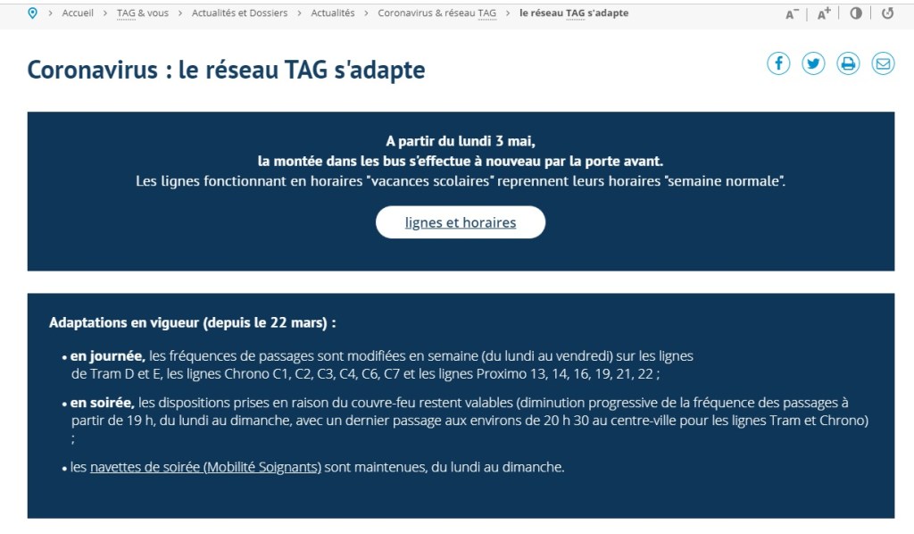 Lignes 3 et 4 : les rames circuleront jusqu’à 22h environ, avec réduction du service de 19h à 22h, une mesure qui aurait dû être prise depuis plusieurs semaines déjà à l’instar de ce qui a été instauré à Grenoble depuis le lundi 8 février 2021 où les derniers passages en centre-ville en soirée ont été avancés à 20h30 sur les cinq lignes de tramway. Une disposition encore en vigueur à ce jour.