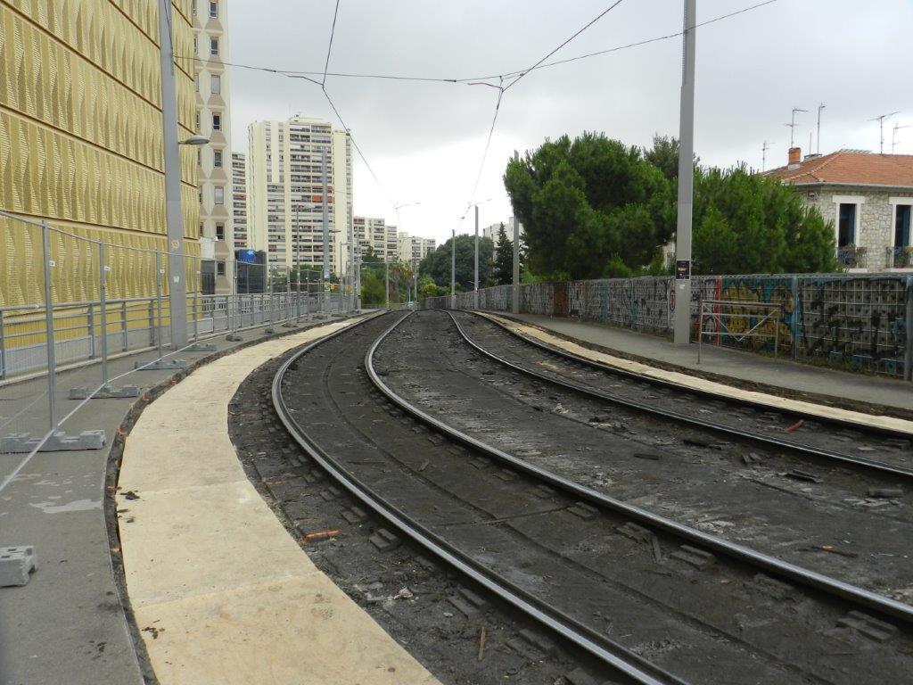 A ce jour, tout un chacun peut constater que le platelage bois a été totalement enlevé entre le bas de la partie inclinée de l’avenue Henri-Frenay et la sortie de la courbe qui précède la station « Du Guesclin ».