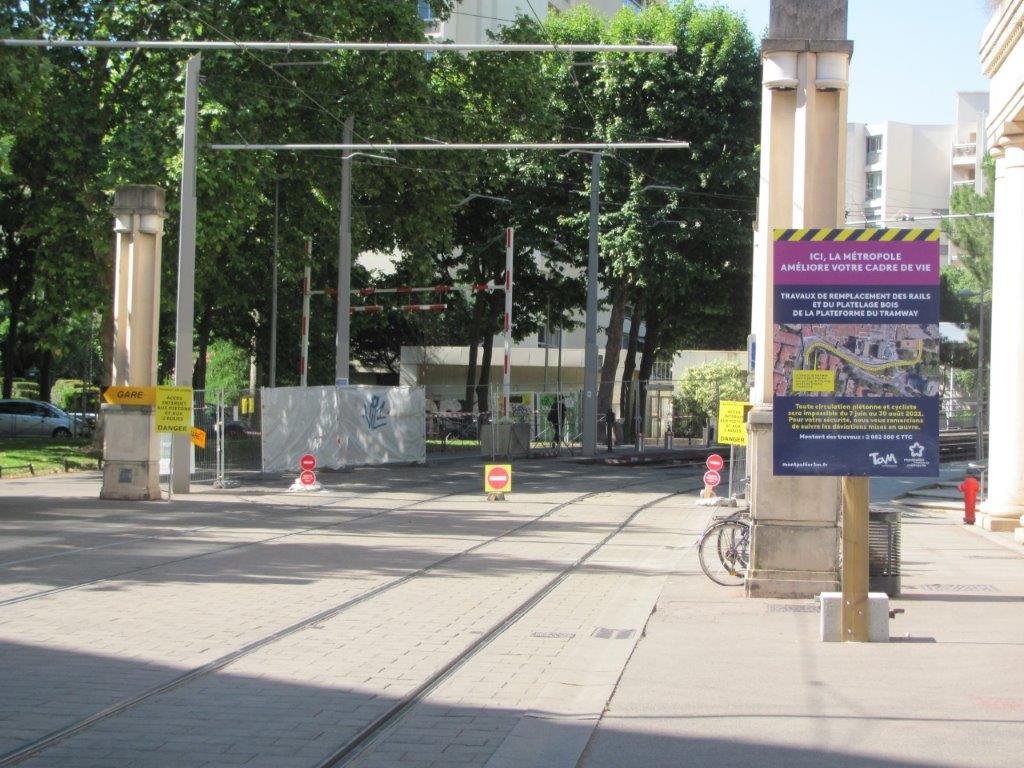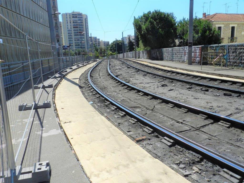 Des travaux de remplacement de rails à gorge usés (phase 2) et de rénovation du revêtement (phase 3) de la plateforme de la ligne 1 de tramway se dérouleront dans le courant de l’été 2021 dans la rampe en viaduc de l’avenue Henri-Frenay à Montpellier qui se trouve entre les stations « Antigone » et « Du Guesclin » jusqu’à la sortie de la courbe située à la hauteur du passage de l’Horloge.