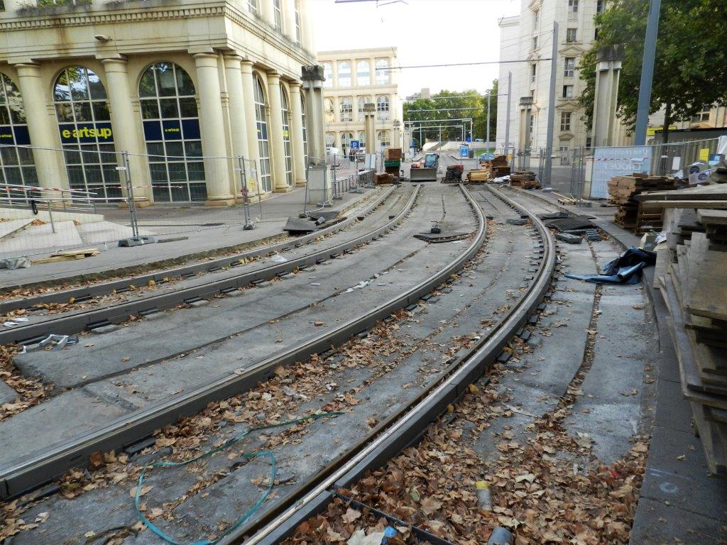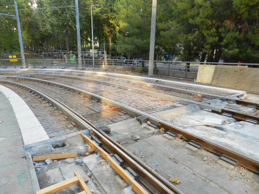 La surface du nouveau platelage bois sera inférieure à la configuration précédente dans la mesure où il ne sera pas posé dans la première courbe qui succède à la station « Antigone » en direction de la station « Du Guesclin ». A la place, la plateforme devrait être recouverte par du béton désactivé.