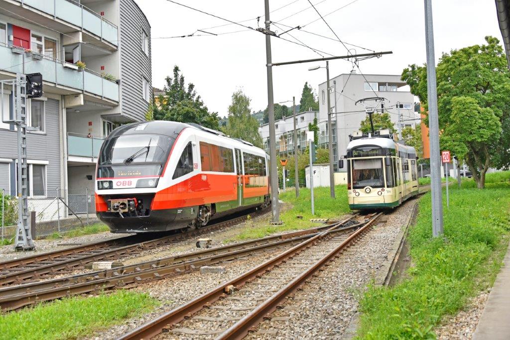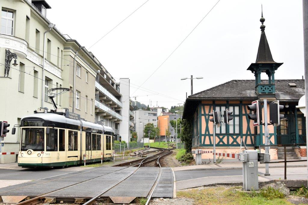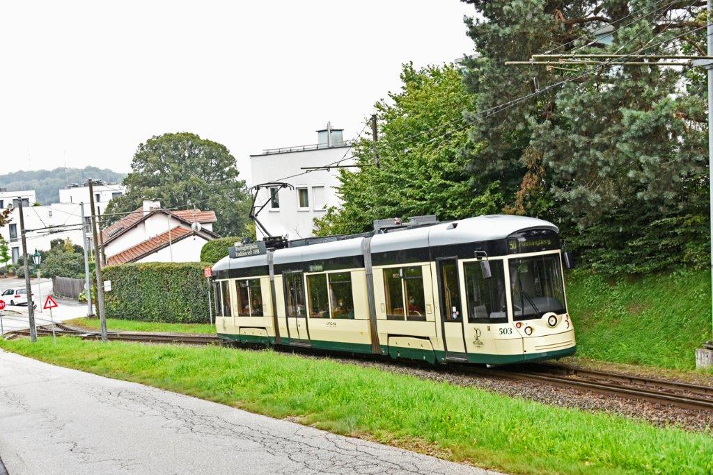 Depuis que le raccordement de la ligne de montagne au réseau de tramways en 2009, les rames de la ligne 50 doivent couper la voie à écartement standard de 1 435 mm où circulent des trains des Chemins de fer fédéraux autrichiens (ÖBB), à proximité de l’ancien terminus « Bergbahnhof Urfahr » (264 m d’altitude), ce qui les oblige à stopper parfois longuement pour laisser la priorité aux trains ÖBB. Le terminus « Pöstlingberg » culmine à 519 m d’altitude.