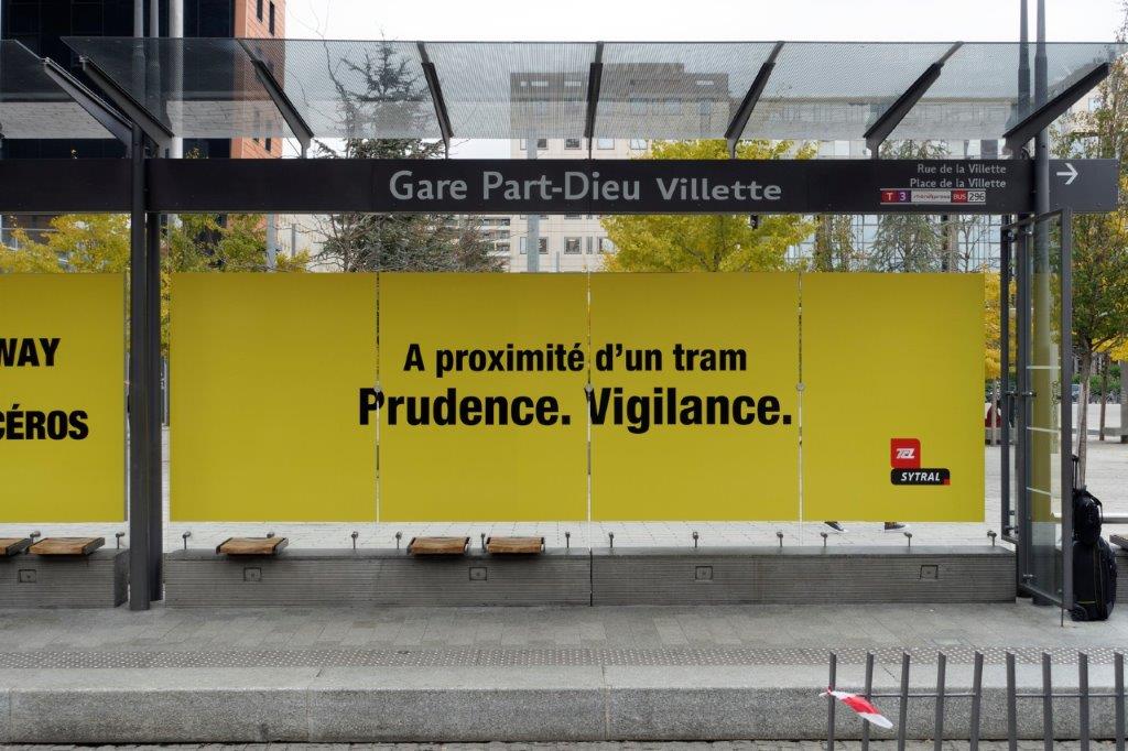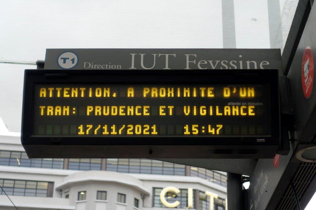 A Lyon, depuis le lundi 15 novembre 2021, le SYTRAL a lancé une nouvelle campagne de communication pour sensibiliser les usagers de la route, notamment les piétons, les trottineurs et les cyclistes, aux dangers que peut représenter une rame de tramway.