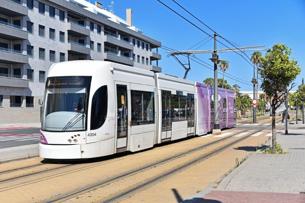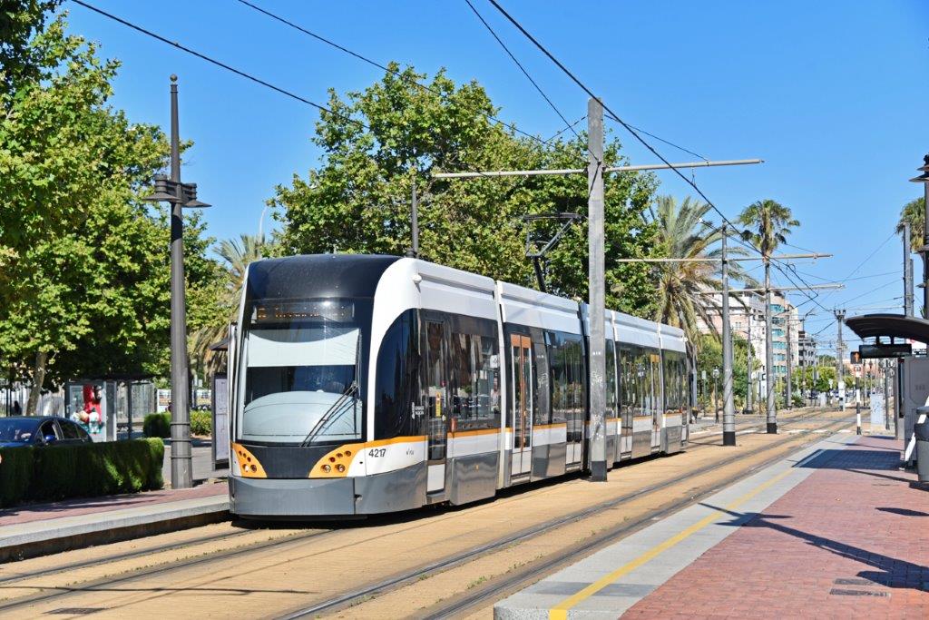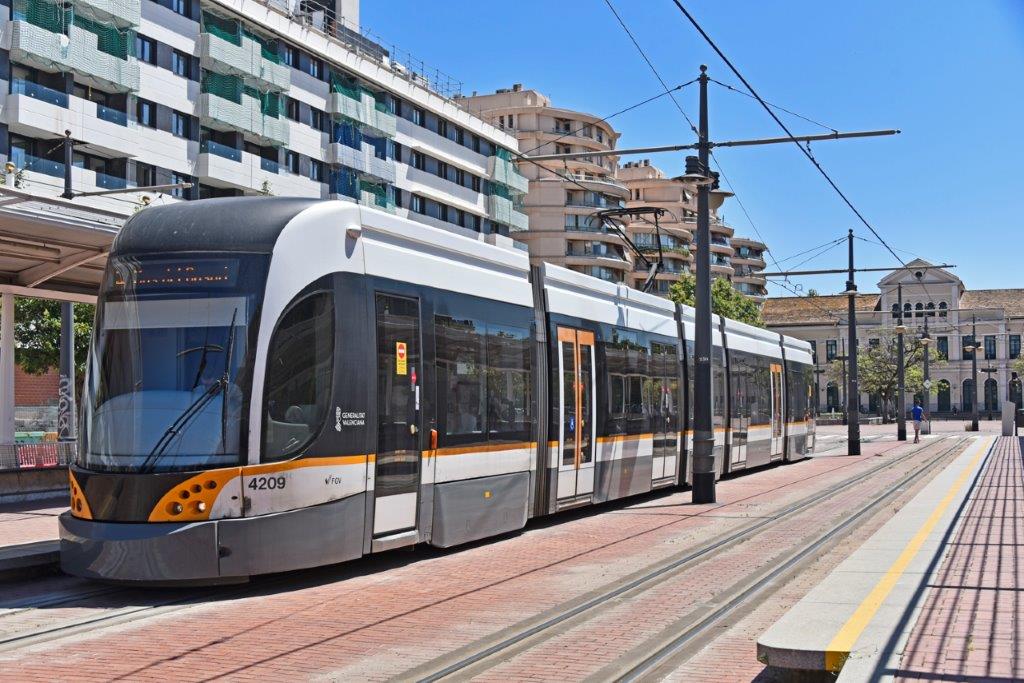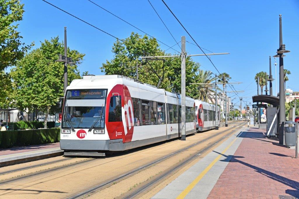 Le réseau moderne de tramways à voie métrique de Valencia comprend deux autres lignes numérotées 6 et 8 alimentées en électricité 750 V courant continu par caténaire.