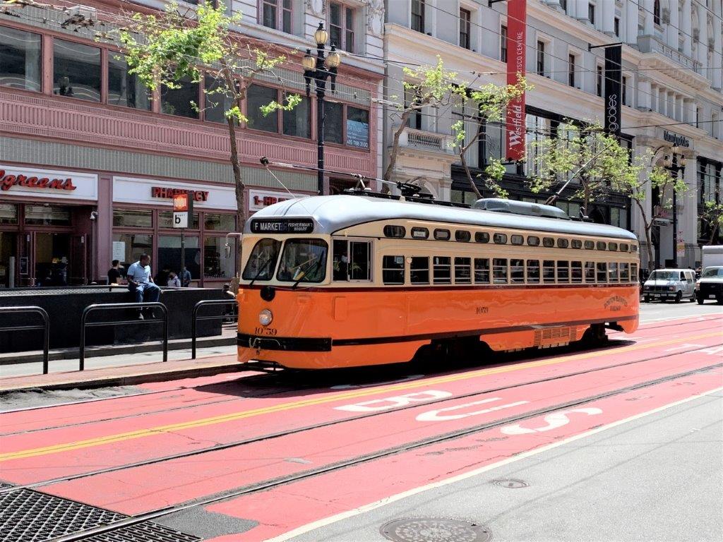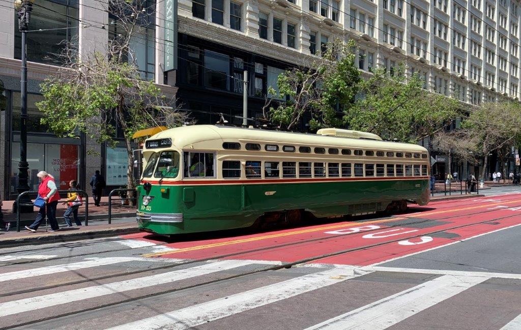 Ping: A San Francisco, les carrosseries des emblématiques motrices PCC, opérant en service régulier sur la ligne F Market & Wharves. – bustramgeneve