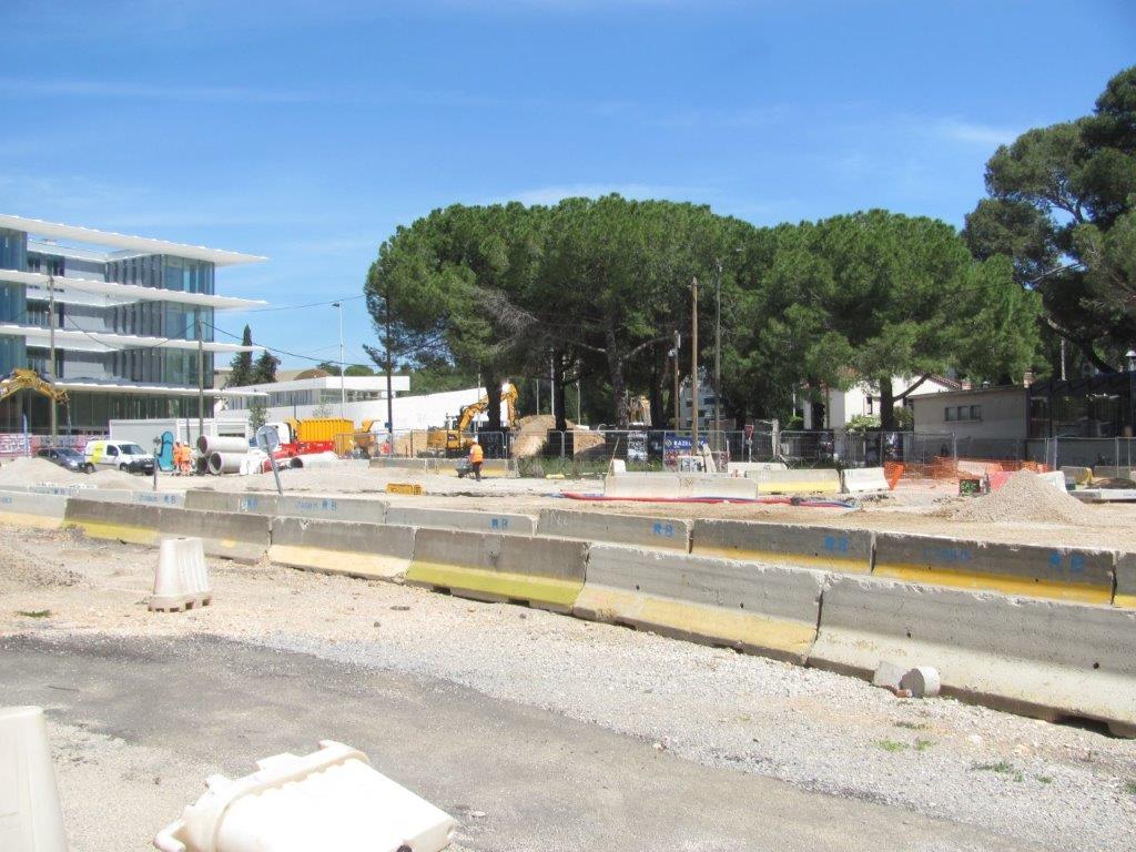 Route de Mende à Montpellier, les premiers coups de pioche du chantier en lien avec la réalisation de la ligne 5 de tramway ont été donnés le lundi 15 avril 2019. Trois ans plus tard, la pose des premiers rails se fait toujours attendre.