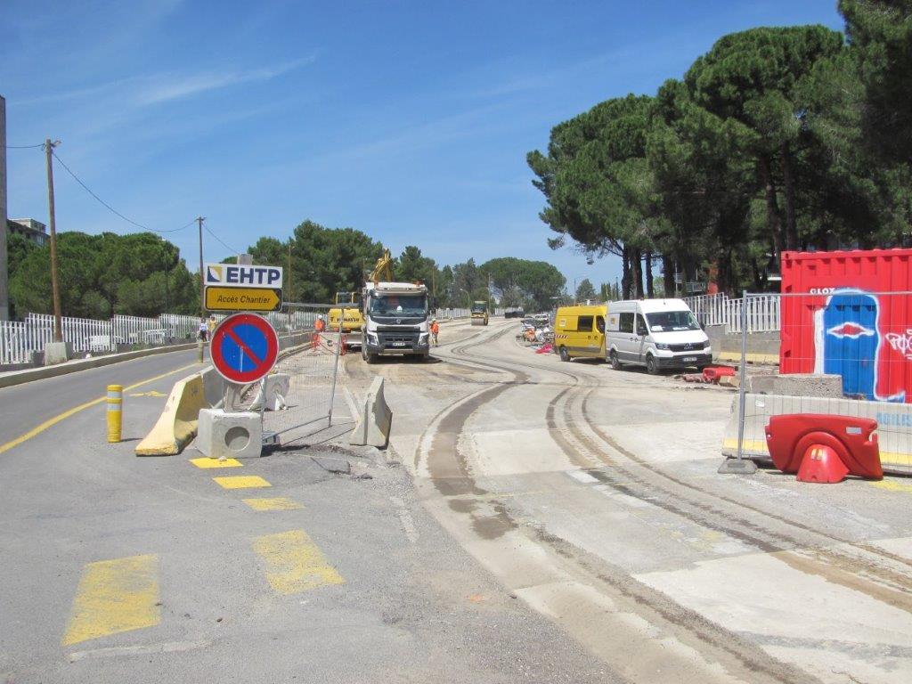Du côté d’Agropolis et de Montferrier-sur-Lez, les travaux préparatoires à la construction de trois ouvrages d’art de franchissement de cours d’eau sont en cours. Un premier pont permettra aux rames de la ligne 5 de passer au-dessus du ruisseau la Valette, avenue Agropolis à Montpellier, un deuxième pont enjambera le ruisseau la Lironde, avenue Agropolis aux limites des communes de Montpellier et Montferrier-sur-Lez, et un troisième pont, le plus important, sera construit au-dessus du fleuve côtier le Lez, parallèlement à la route métropolitaine M65, aux limites des communes de Montferrier-sur-Lez et Clapiers.