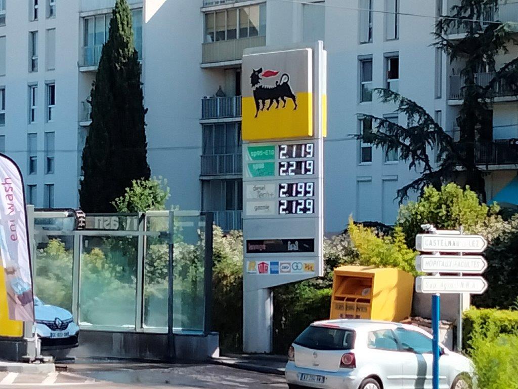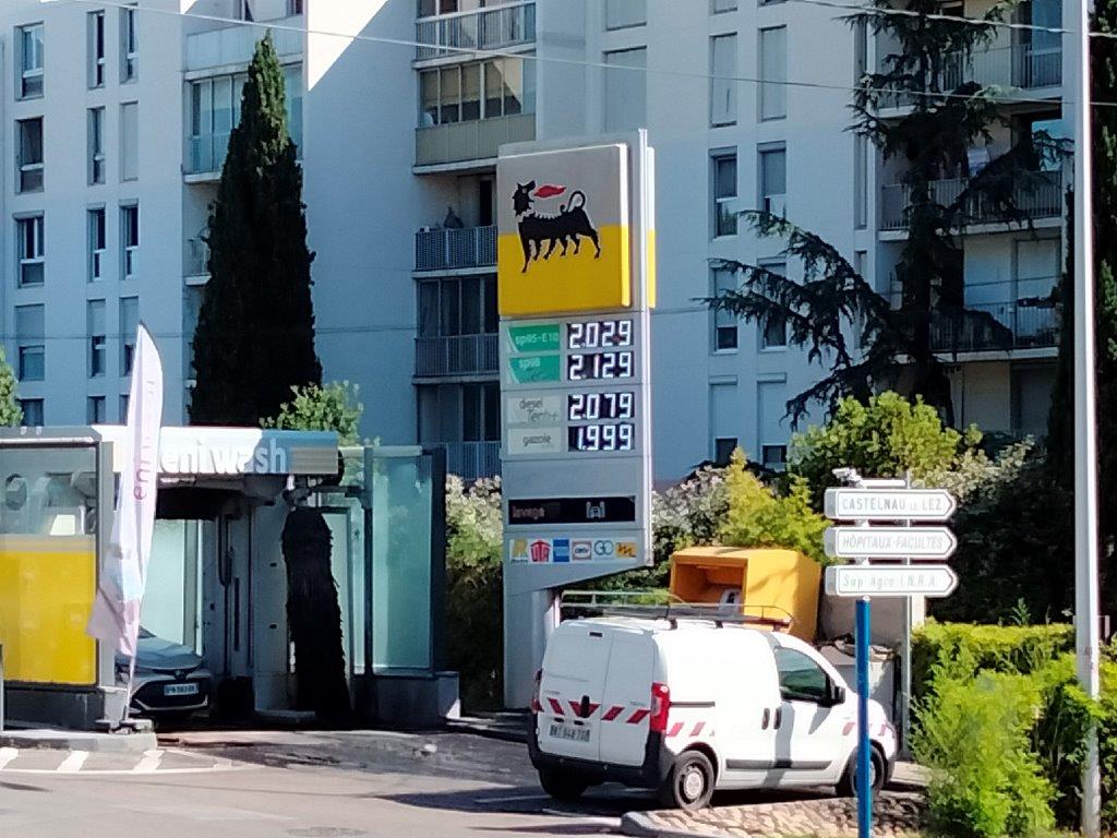 Dans la station-service Eni, au 544 rue Paul-Rimbaud à Montpellier, qui sert de station-service de référence à l’auteur de la présente info, en ce tout début du mois de juin 2022, le prix au litre du gazole s’élève à 2,129 €, celui de l’essence SP95-E10 coûte 2,119 € et celui de l’essence SP98 atteint 2,219 €. Sans le rabais gouvernemental de 18 centimes d’euro, le prix au litre du gazole afficherait 2,309 €, celui de l’essence SP95-10 2,299 € et celui de l’essence SP98 2,399 €. Ces prix seraient supérieurs à ceux déjà élevés relevés le vendredi 11 mars 2022.