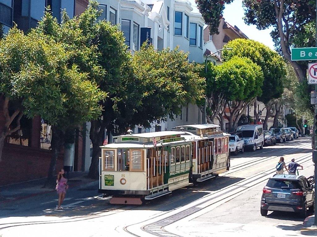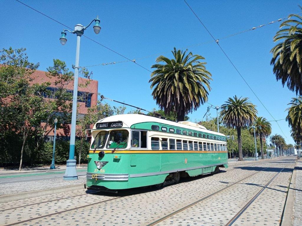 Cette mesure devrait doper le tourisme international estival à destination des villes américaines de New York, Los Angeles, Washington, La Nouvelle-Orléans, Chicago ou bien encore San Francisco où l’autrice de la présente info et des photos qui l’illustrent a fait une courte escale cette semaine au cours de laquelle elle a immortalisé, sous un soleil radieux, des motrices PCC vintage de la seconde moitié des années 1940 opérant en service régulier sur la ligne F Market and & Wharves du réseau Muni, le long du célèbre boulevard de front de baie The Embarcadero, et d’emblématiques cable cars opérant sur la ligne 60 Powell-Hyde à la tarification spécifique du côté de son terminus nord « Hyde Street & Beach Street ».