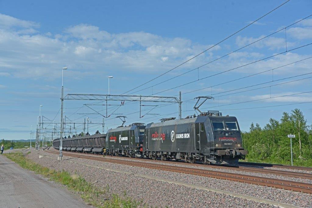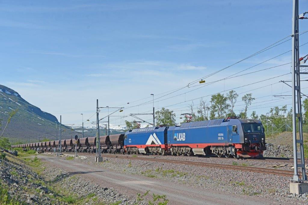 La ligne à voie unique Kiruna – Narvik, équipée de nombreuses voies d’évitement de plus de 750 m de long permettant une fluidité optimale du trafic ferroviaire, est parcourue 7j/7 par quatorze trains de minerai de fer, parmi lesquels douze sont opérés par deux filiales de la compagnie minière LKAB et deux par la société Kaunis Iron, dont les convois de cette dernière partent de Pitkäjärvi. Chaque train aux couleurs de LKAB est composé de deux puissantes locomotives électriques monocabines Iore fabriquées à Kassel en Allemagne par la société ADtranz rachetée par Bombardier en 2001 et de 68 wagons-trémies. Pour ce qui est de la société Kaunis Iron, chaque train comprend 18 paires de wagons à déchargement ultrarapide tractées par deux voire trois locomotives bicabines TRAXX F140 AC2 Re 482 Bombardier. A Narvik, chaque société dispose de son propre terminal d’expédition du minerai de fer aux quatre coins du monde.