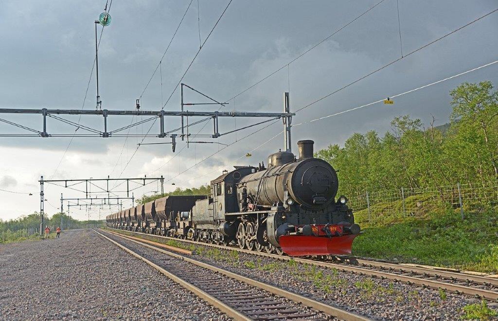 Les 120 ans de l’achèvement de la construction de la ligne ferroviaire Kiruna – Narvik ont été fêtés du jeudi 30 juin au dimanche 3 juillet 2022. A cette occasion, deux trains chargés de minerai de fer ont été tractées aux premières heures du dimanche 3 juillet par des locomotives historiques, le premier, composé de 14 wagons-trémies et de deux wagons de couplage, par la locomotive à vapeur n° 976 de type 0-10-0 construite en 1909 par le Suédois NOHAB et le second, composé de 52 wagons-trémies, par une locomotive électrique Dm3 du constructeur suédois ASEA de type 1’D+D+D1′ année 1970 numérotée 1246-1247-1248 et baptisée « Oskar » retirée du service régulier en 2013. Un train restaurant spécial tiré par la locomotive électrique historique Da du constructeur suédois ASEA année 1955 numérotée 888, a circulé durant les quatre jours de festivités entre Kiruna et la gare d’Abisko Östra. Les trois locomotives historiques, dont il vient d’être fait mention, sont préservées et entretenues en état de marche par le Musée suédois du chemin de fer de Gävle.