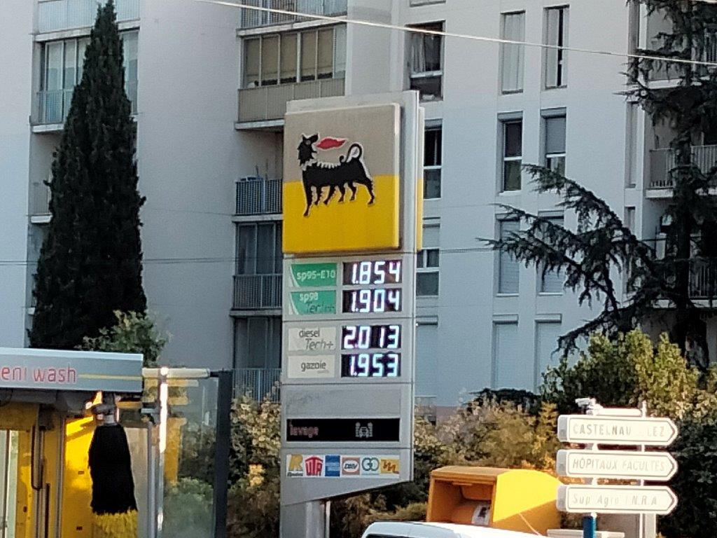 Complément d’info du vendredi 2 septembre 2022 : le jeudi 1er septembre 2022, jour où la ristourne accordée par l’Etat a été portée à 30 centimes d’euro pour une durée de deux mois, dans la station Eni Paul-Rimbaud à Montpellier, le prix au litre de gazole s’élevait à 1,863 €, celui de l’essence SP95-10 à 1,674 € et celui de l’essence SP98 à 1,774 €. La différence entre le prix au litre de gazole et celui de l’essence SP95-10 n’a jamais été aussi élevée.