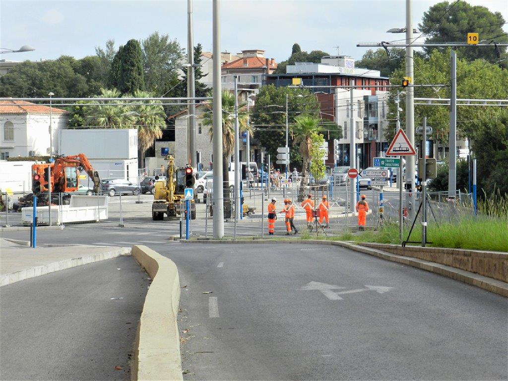 Le chantier en cours, place du 11-Novembre-1918 et dans le bas de l’allée de la Citadelle, concerne les voies habituellement empruntées par les rames des lignes 1 et 2 circulant tant en provenance qu’en direction de la station « Comédie ».