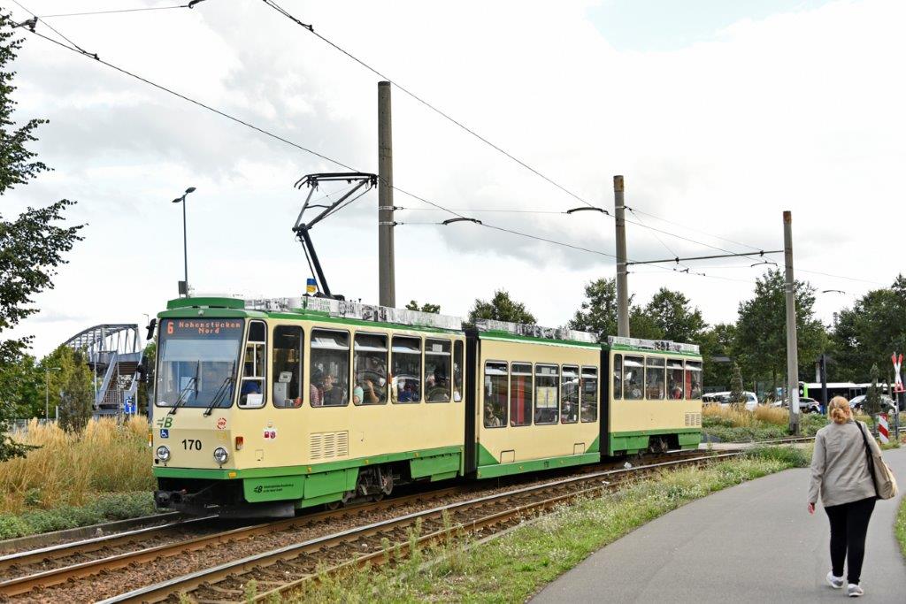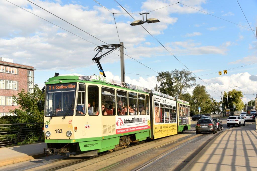 Depuis 2019, le réseau de tramways, exploité par la société Verkehrsbetriebe Brandenburg an der Havel GmbH (VBBr), ne compte plus que deux lignes numérotées 1 et 6 qui desservent toutes les deux le centre historique et la gare principale (Hauptbahnhof) à partir des quartiers nord (terminus « Hohenstücken Nord » ligne 6) et nord-ouest (terminus « Anton-Saefkow-Allee » ligne 1). Les lignes 2 et 12, cette dernière ne fonctionnant que les dimanches et jours fériés, ont été arrêtées après que le pont du 20e anniversaire sur Magdeburger Straße a dû être fermé à la circulation des tramways puis à la circulation générale en raison de son état déplorable. Il faut dire que cet ouvrage d’art imposant a été construit en un temps record (16 mois) durant la période communiste pour être inauguré le samedi 4 octobre 1969, trois jours avant le 20e anniversaire de la République démocratique allemande (RDA). Ce pont, qui enjambe des voies routières et de chemin de fer, a été totalement détruit à la dynamite au mois de mai 2021. Une mise en service partielle du nouveau pont est envisageable au second semestre 2023 et l’ouverture complète à la circulation est prévue un an plus tard. La ligne 2 de tramway est remplacée par une ligne de bus portant le même numéro, mais suivant un itinéraire plus direct entre « Quenzbrücke » et « Hauptbahnhof » dans les deux sens.