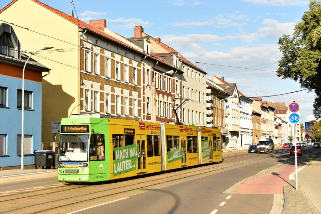 A Brandenburg an der Havel, la première section d’une ligne circulaire de tramway hippomobile ouvre en centre-ville le vendredi 1er octobre 1897. La boucle est bouclée le samedi 12 novembre 1898. L’année précédant sa disparition, le réseau de tramways à traction animale ne compte que deux lignes aux voies à écartement métrique.