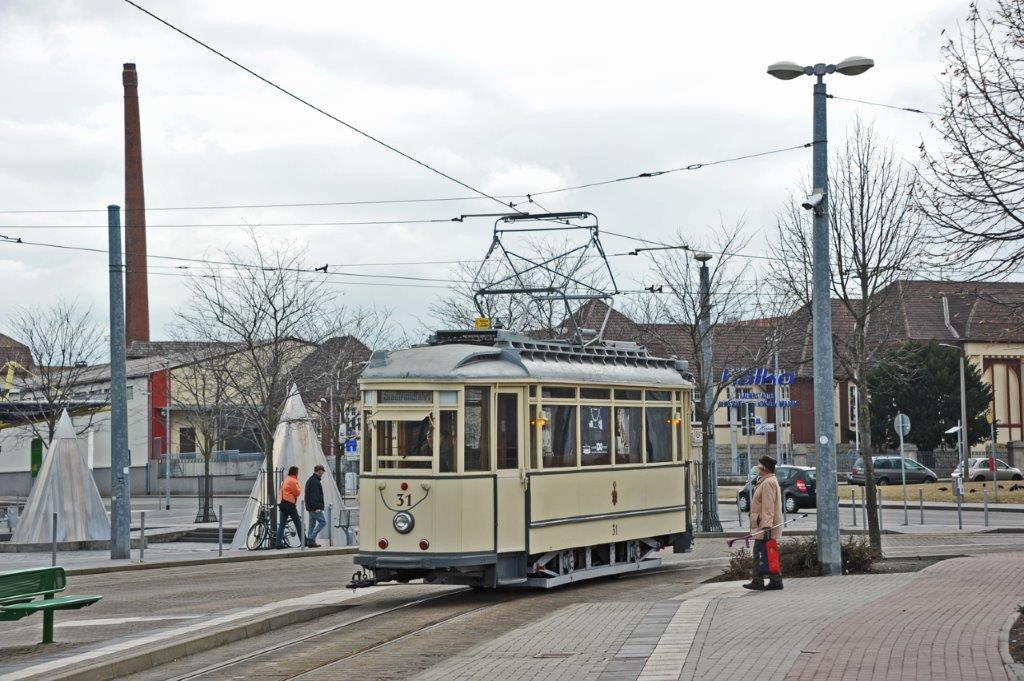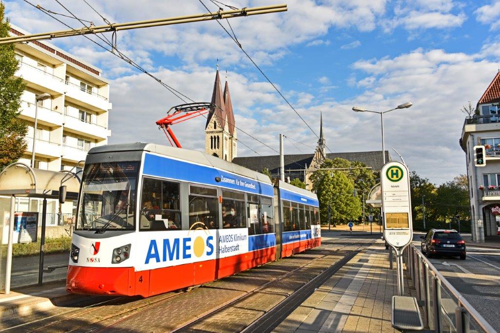 A Halberstadt, deux lignes de tramway hippomobile voient le jour le lundi 28 juin 1897. Leur électrification est effective le samedi 2 mai 1903. En 1909, le réseau de tramways compte 6 lignes totalisant 23,3 km exploitées sur 14,5 km de voies. A partir de 1914 et jusqu’en 1946, le réseau de tramways de Halberstadt connaît bien des vicissitudes : restrictions liées à la Première Guerre mondiale, baisse de trafic et de revenus en raison de la crise économique pendant les années 1920, bombardement des infrastructures lors du raid aérien du dimanche 8 avril 1945.