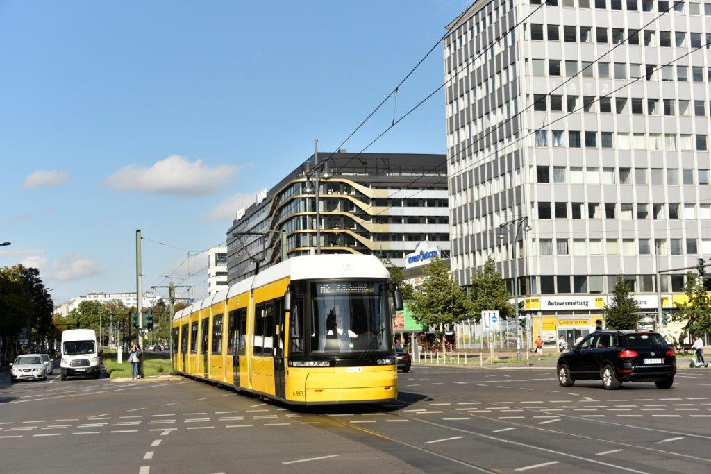 Karl-Liebknecht-Straße à Berlin, photographie de la rame 9062 F8Z Flexity Bombardier, opérant sur la ligne M4 en direction du terminus « S Hackescher Markt », le dimanche 28 août 2022. Copyright : Thierry Leleu
