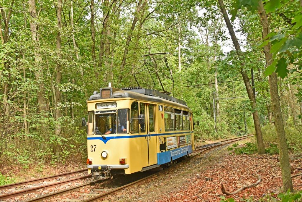 Cette ligne de tramway interurbain à voie standard (1 435 mm), dont la caténaire est alimentée en 600 V courant continu, prend naissance à la périphérie est de Berlin et relie la gare Stadtbahn (ligne S3) de Berlin-Rahnsdorf à Woltersdorf. La longueur du parcours est de seulement 5,6 kilomètres, une distance restée inchangée depuis son ouverture le vendredi 2 mai 1913 malgré divers plans d’expansion. De plus, c’est l’une des dernières lignes à utiliser des motrices Gotha fabriquées à la fin des années 1950 et au tout début des années 1960 en Allemagne de l’Est. Depuis 1991, au lendemain de la réunification de l’Allemagne, le propriétaire et l’exploitant est Woltersdorfer Strassenbahn GmbH, en abrégé WS, qui appartient à parts égales à la commune de Woltersdorf et au district d’Oder-Spree. Le mercredi 1er janvier 2020, Schöneicher-Rüdersdorfer Strassenbahn GmbH (SRS) a repris la direction opérationnelle pour 22 ans et demi.