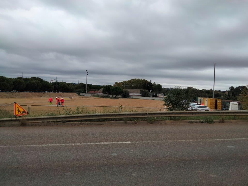 Une base de travaux est en cours d’installation sur un terrain situé à l’angle de la route de Vauguières et du boulevard Pénélope à Montpellier.