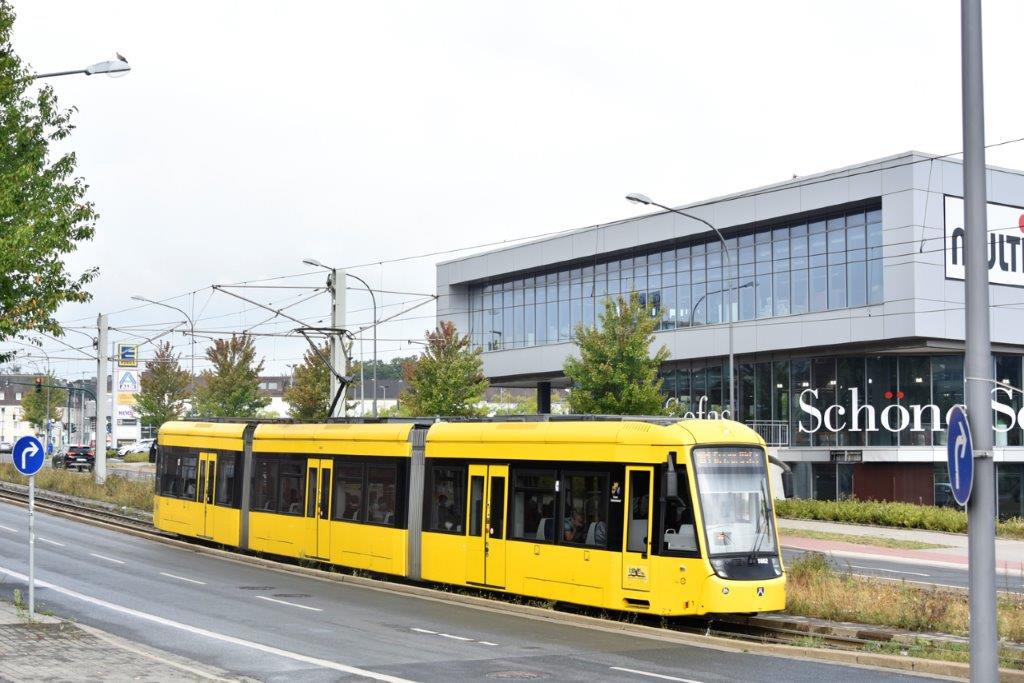 La ligne 102 de tramway opère uniquement dans Mülheim an der Ruhr, la ligne 112 de tramway relie Mülheim an der Ruhr à sa voisine Oberhausen, une ville de 208 752 habitants, et seule la ligne 104 raccorde Mülheim an der Ruhr à Essen. Il existe également une ligne de tramway numérotée 901 à voie standard, faisant partie du réseau de transports en commun de Duisburg (495 152 habitants), qui assure une liaison entre le quartier Obermarxloh à Duisburg et la gare centrale de Mülheim an der Ruhr via le centre-ville de Duisburg. Ainsi, la ligne 102 à voie métrique et la ligne 901 à voie standard partagent la même plateforme dans la section souterraine située entre le dépôt de tramway de Mülheim an der Ruhr et la gare centrale de cette même ville, d’où la présence de huit files de rails. Les rames utilisées sur les lignes 102, 104 et 112 sont toutes bidirectionnelles à plancher surbaissé et sont rattachées au dépôt de tramway de Mülheim an der Ruhr.