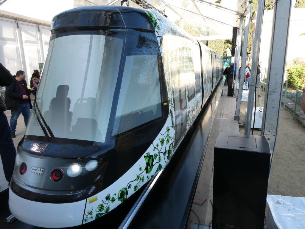 A cette occasion, l’auteur de la présente info a pu réaliser quelques photos autour de la maquette de cette rame montpelliéraine Urbos 100X CAF, dont un petit échantillon est présenté ci-dessous.