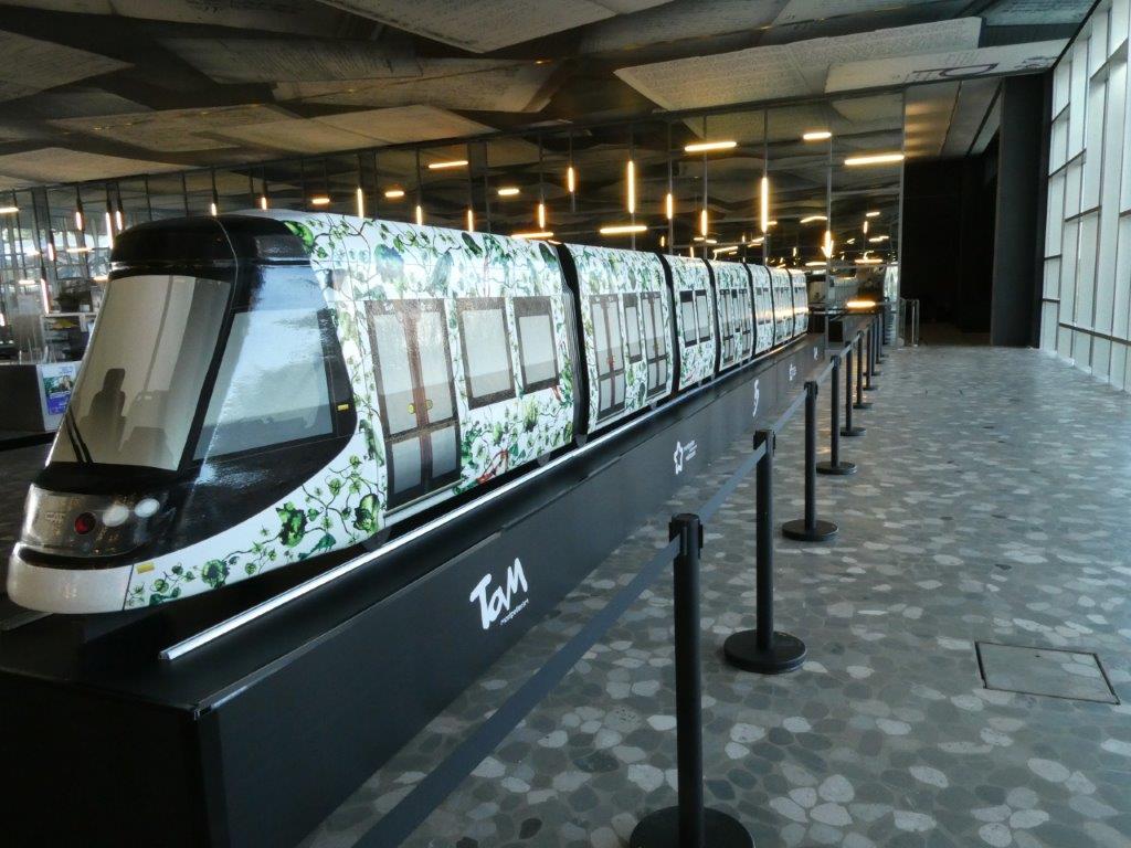 8 Responses to 6 février 2023 – La maquette à l’échelle 1/3 de la rame Urbos 100X CAF revêtue de la livrée ligne 5 « Feuille de vie », est exposée dans le hall de l’Hôtel de Ville de Montpellier du lundi 6 février au jeudi 16 mars 2023