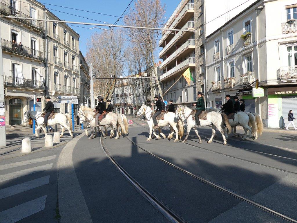 Préalablement à ce rassemblement, près de trois cents chevaux camarguais montés par des cavalières et cavaliers revêtus de la tenue traditionnelle des gardiannes et gardians, ont défilé dans Montpellier entre le domaine de Grammont et l’esplanade Charles-de-Gaulle.