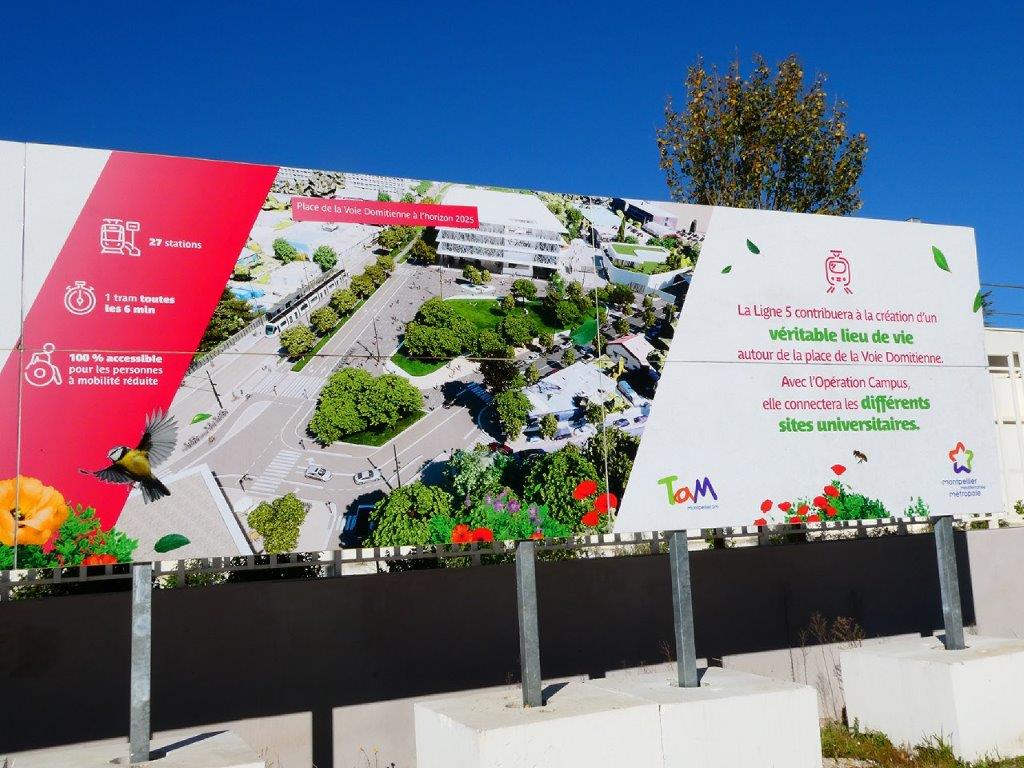 Route de Mende à Montpellier, le délai entre le premier coup de pioche et la mise en service commercial de la future ligne 5 de tramway, annoncée pour la fin de l’année 2025, pourrait avoisiner les 80 mois, soit 6 ans et 8 mois, certainement un record de France en la matière, dans la mesure où il n’y a pas de tunnel à construire, contrairement à la ligne T2 de Nice qui dispose d’un ouvrage de ce type d’une longueur de 3,2 km avec quatre stations souterraines.