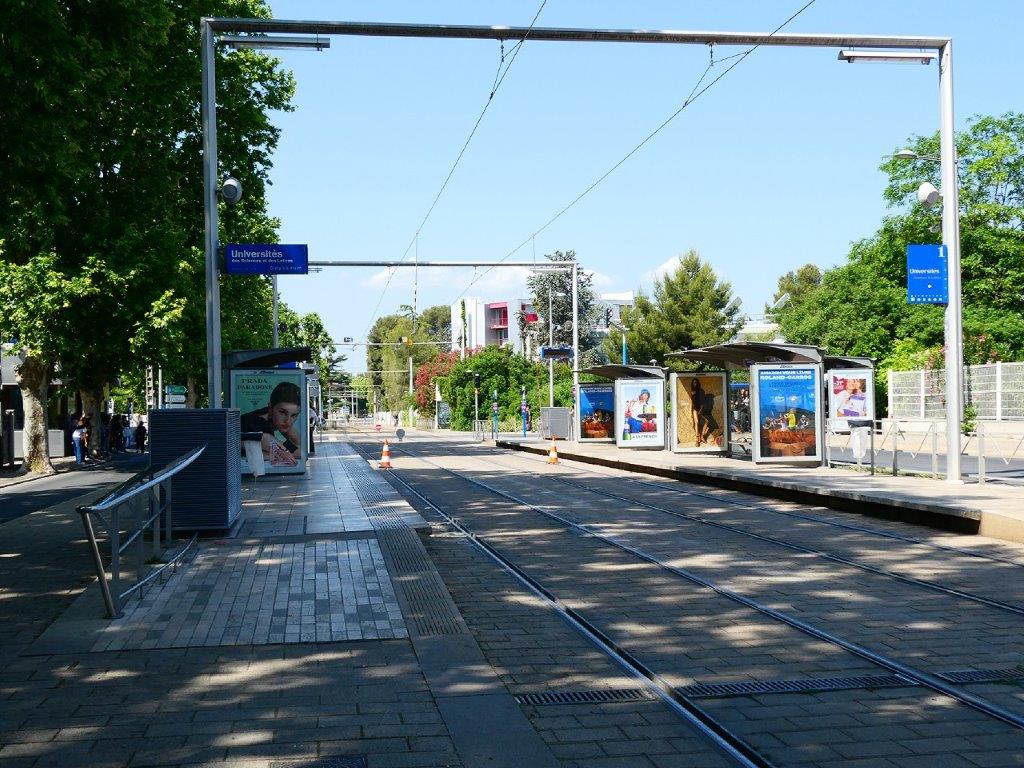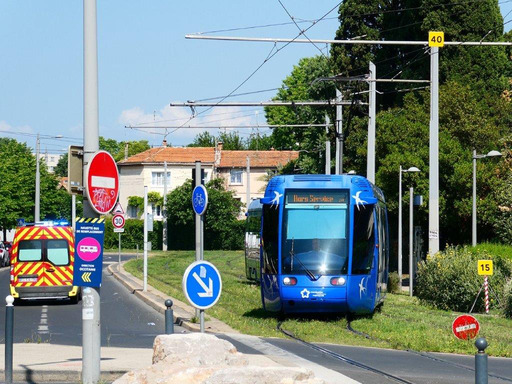 En conséquence de ce qui précède, les stations de la ligne 1 « Hôpital Lapeyronie », « Universités des Sciences & Lettres », « Saint-Eloi », « Boutonnet – Cité des Arts » et « Stade Philippidès » ne sont pas desservies par les rames de tramway ces samedi 27 et dimanche 28 mai 2023. A la place, une navette de substitution assurée par des bus relie la station « Occitanie » à la station « Place Albert 1er – Saint-Charles » et dessert dans les deux sens les arrêts provisoires « Hôpital Lapeyronie », « Universités Sciences & Lettres » et « Boutonnet – Cité des Arts » et dans un seul sens l’arrêt « Stade Philippidès ».