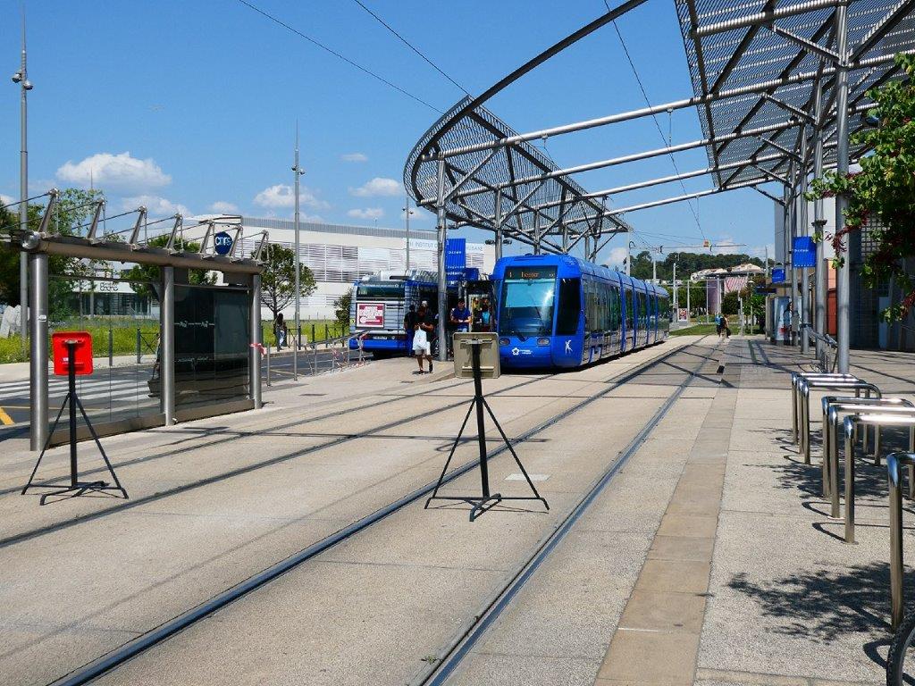 Les stations temporaires « Saint-Eloi – CHU » et « Saint-Eloi Grasset », qui seront en service du lundi 29 mai au vendredi 1er septembre 2023, sont distantes de 400 mètres environ. Le quai en bois de la station « Saint-Eloi CHU », avenue Emile-Bertin-Sans, est posé sur voie 2, alors que le quai en bois de la station « Saint-Eloi Grasset », avenue du Professeur Grasset, est installé sur voie 1. Pour se rendre à pied d’une station temporaire à l’autre, il y aura lieu de suivre un cheminement piétonnier qui traverse une artère routière sur laquelle le trafic est particulièrement dense. La chaussée vient d’être réduite à une voie dans chaque sens et les feux de signalisation neutralisés. Aussi, les usagers de la ligne 1 devront faire preuve d’une prudence accrue au moment de traverser le passage piéton matérialisé au sol à la jonction de l’avenue Frédéric-Sabatier-d’Espeyran et de la rue Henri-Dunant.