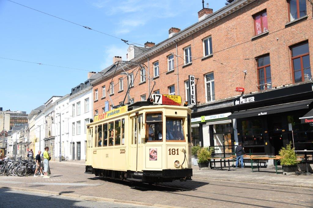 Dès 9h00, des tramways historiques en état de marche sont sortis de l’ancien dépôt de Groenenhoek devenu musée, dans le district de Berchem, pour rejoindre le terminus en boucle « Havenhuis » (Maison du port) de la ligne 24 de tramway où ont été rassemblées de 10h à 11h30 des motrices et des rames retenues pour participer au défilé commémoratif. De 11h30 à 12h, plusieurs tramways historiques et modernes ont paradé entre « Havenhuis » et Amsterdamstraat en passant par le Mexicobruggen (Pont- de-Mexico), Kattendijkdok-Oostkaai et le Londenbrug (Pont-de-Londres), puis de 12h à 18h le public a pu admirer ces mêmes tramways stationnés dans Amsterdamstraat entre le Londenbrug et Bataviastraat. Celles et ceux qui étaient en possession d’un billet ont pu embarquer dans des motrices historiques pour un voyage de 37 minutes entre Amsterdamstraat et Londenstraat via Meirbrug, Nationale Bank et Opera, ou bien à bord de la baladeuse A.8947 tirée par deux chevaux de trait circulant sur une boucle Bataviastraat – Bataviastraat en passant par Sint-Laureinskaai, Rijnkaai, et Amsterdamstraat.